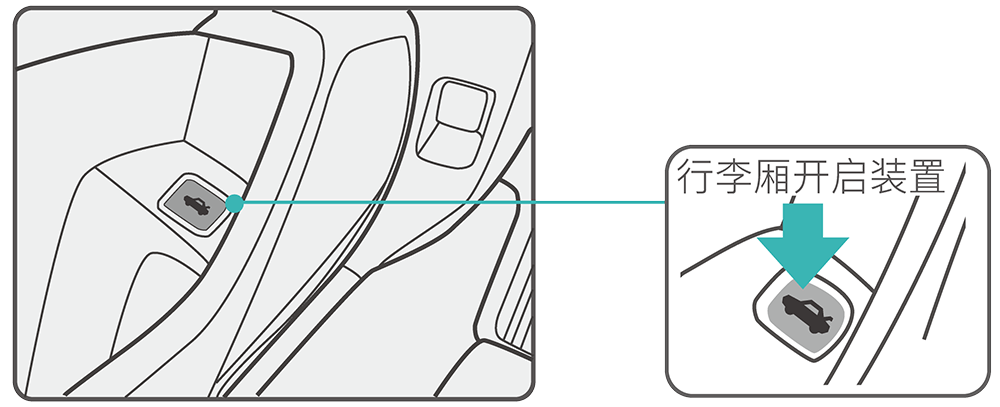 长按驾驶员侧车门上的行李厢开启装置解锁,并打开行李厢。