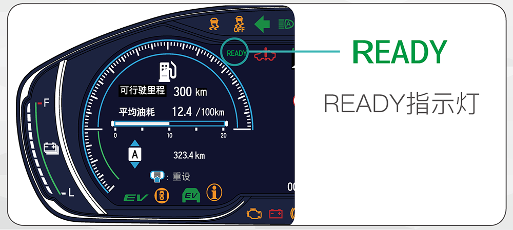 检查READY指示灯。当READY指示灯点亮,表示电源系统打开并且可以驾驶。