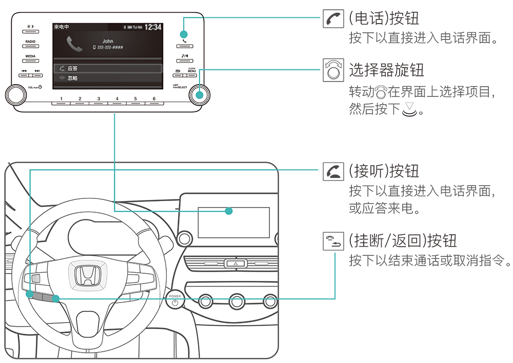 车载蓝牙(HFT)系统可供您使用车辆音响系统拨打和接听电话,而无需操作移动电话。