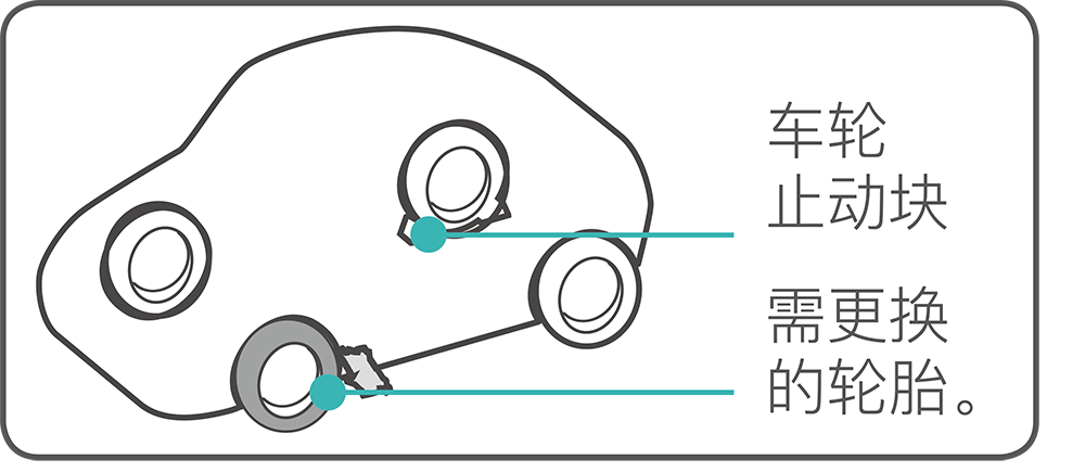 2.将车轮止动块或石块放在需要更换轮胎的对角车轮的前侧与后侧。