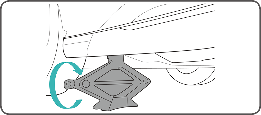 3.将紧凑型备胎(车轮侧朝上)置于车身下,靠近需要更换的轮胎,设置千斤顶。
