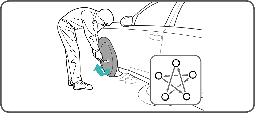 6.降下车辆,拆下千斤顶按图示顺序紧固车轮螺母