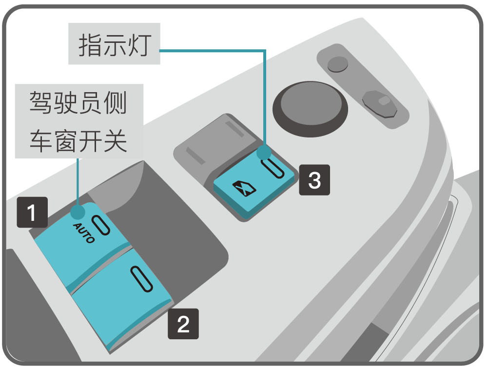 用力按下或拉起开关,可完全打开或关闭车窗;轻轻按下或拉起开关并保持,可达到所需位置。