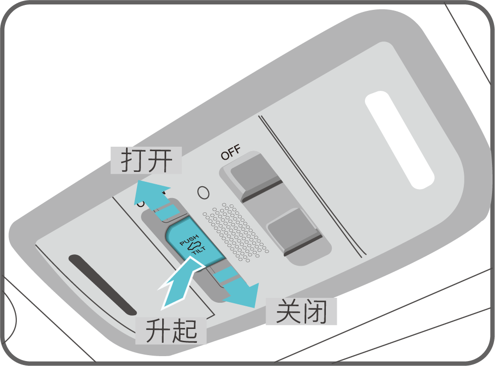 按下天窗开关可升起天窗;用力前推可降下天窗。