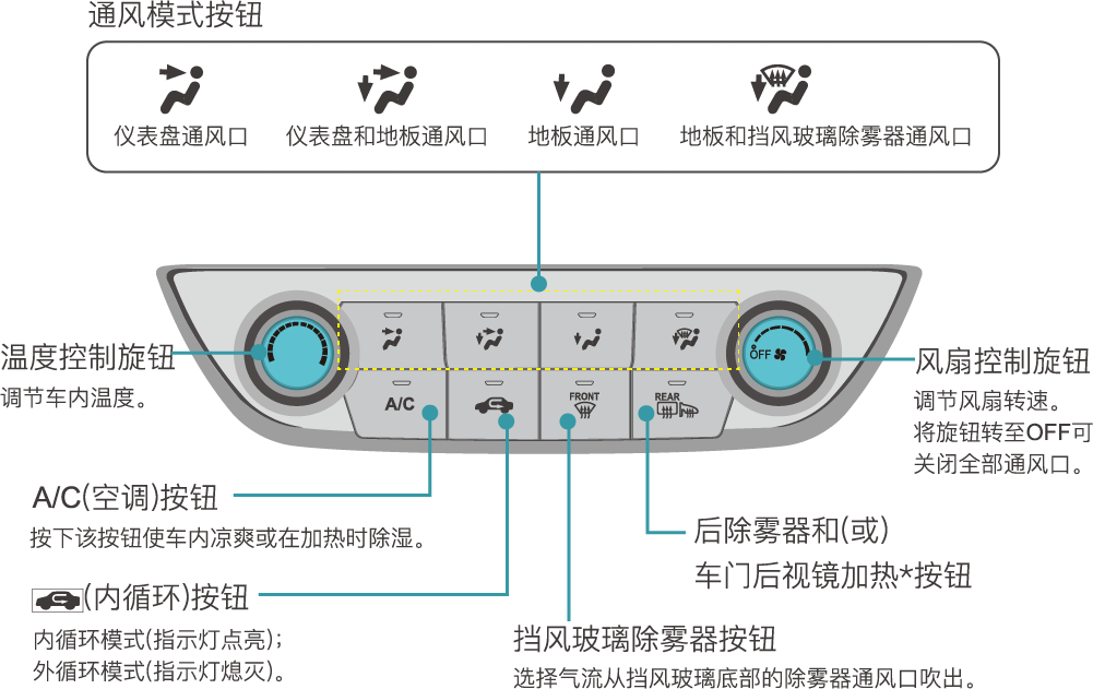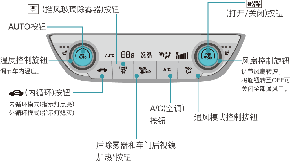 - 车窗除雾/霜后,将系统切换至外循环模式。