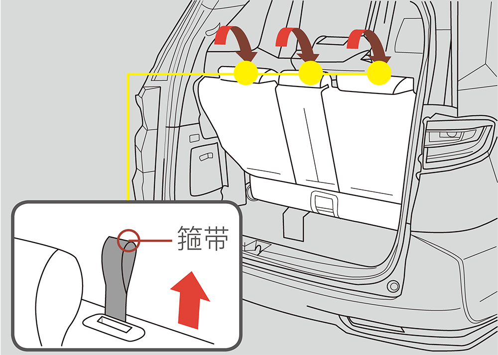 拉箍带,解锁座椅靠背。向前推座椅靠背。