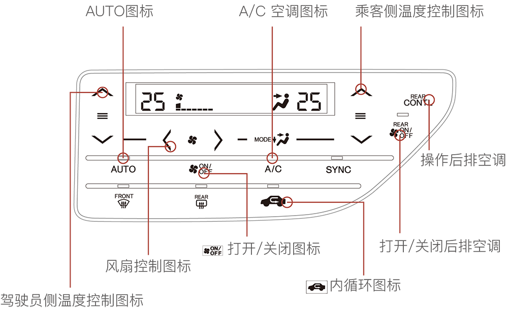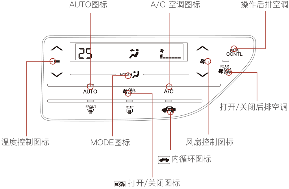 循环按钮,指示灯熄灭,切换至外循环模式。