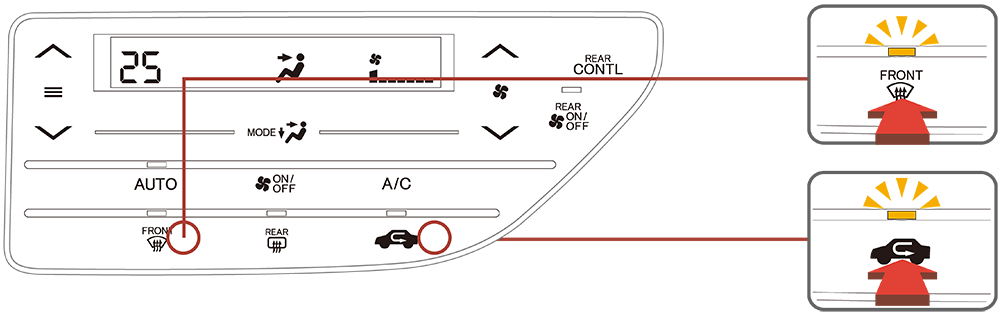 挡风玻璃除雾/霜按钮,指示灯点亮。