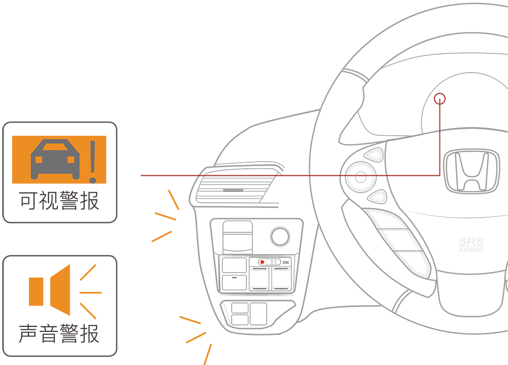 当可能发生碰撞时,系统会提供可视和声音警报,并在碰撞得以避免后停止。此时,您应采取适当的措施预防碰撞,例如施加制动、变换车道等。